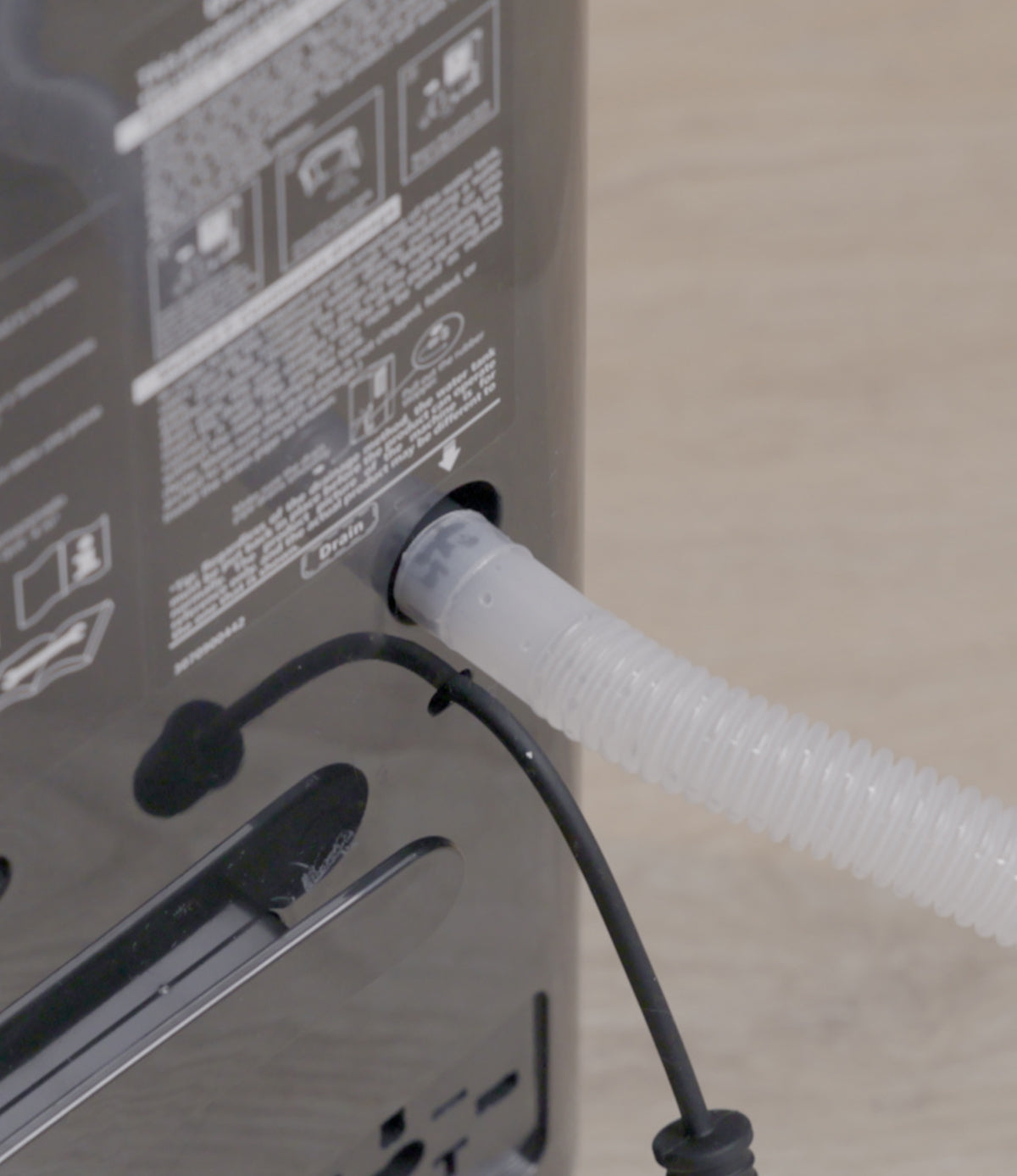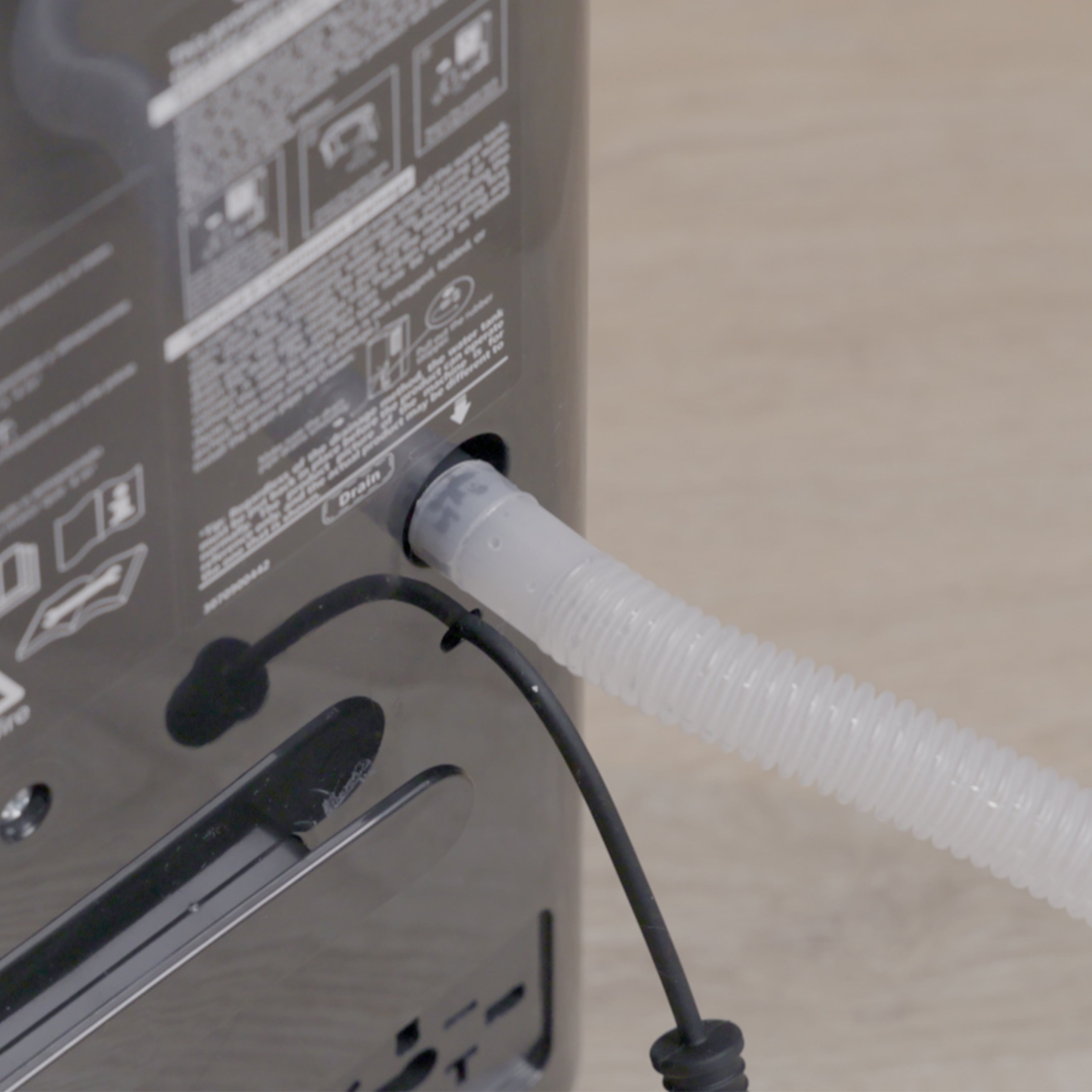 Kies voor continue afvoer en voorkom het constant legen van de waterbak in geval van een hoge vochtigheidsgraad.