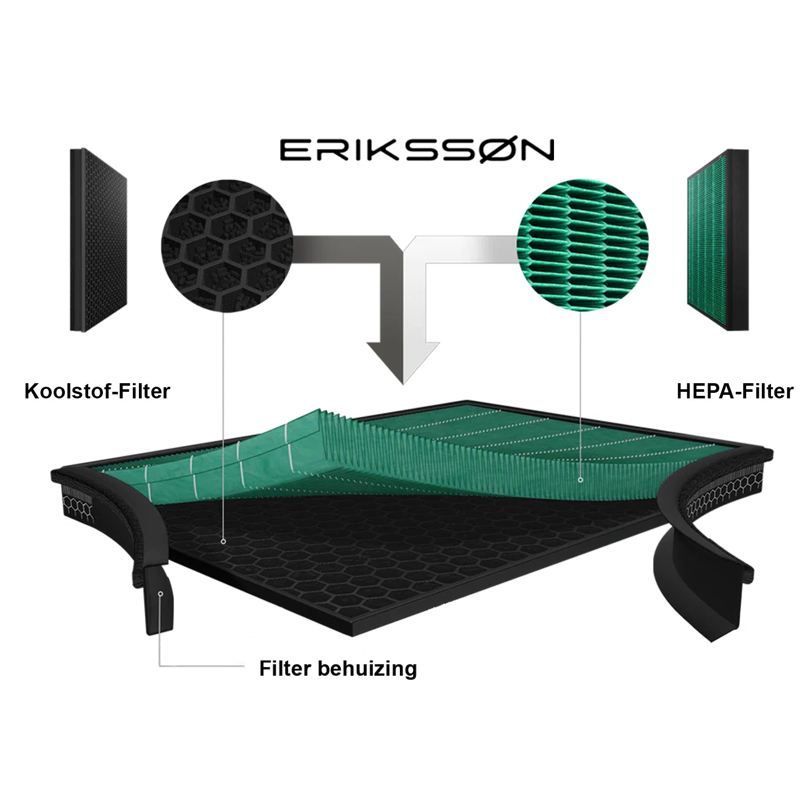 Ontmoet de Erikssøn HEPA-technologie in deze ontworpen filter. Deze HEPA-Filter vangt tot 99,9% van alle virussen, bacteriën, schimmel en pollen.